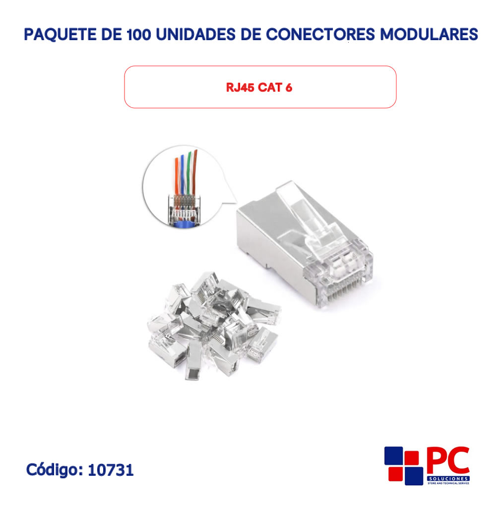 Paquete De 100 Unidades De Conectores Modulares Rj45 Cat 6